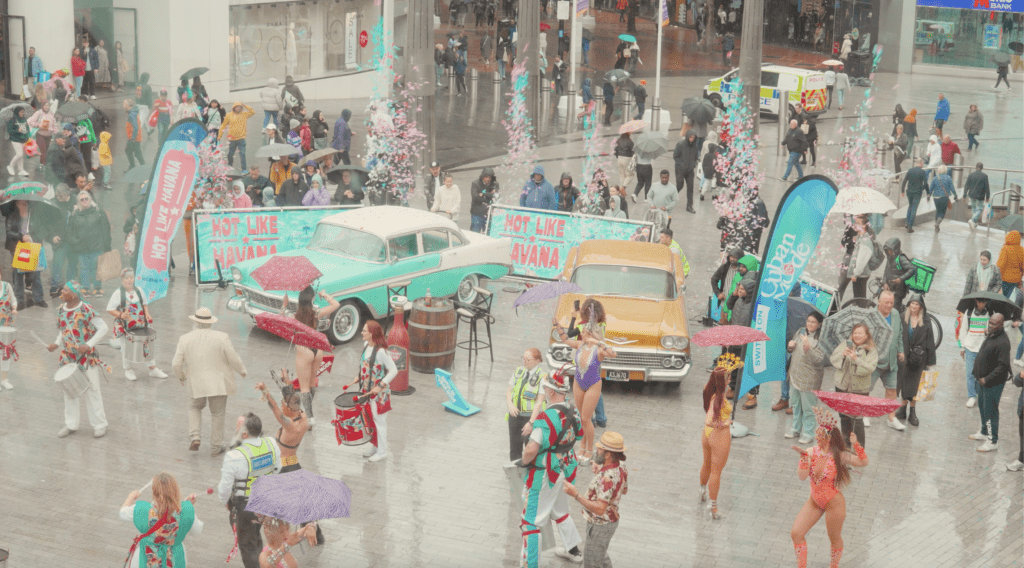 When we brought a Cuban carnival to a wet Birmingham city centre, it wasn’t just weird (we love weird…): it was weaponised weirdness. This bold move captured attention and refused to let go, demonstrating how being “offbeat” can generate massive engagement.